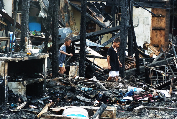 ・ Big fire in Romkraw area of Klontoey slum, and 80 houses were completely or partially burned down : We provided building materials with SVA on October 2013.